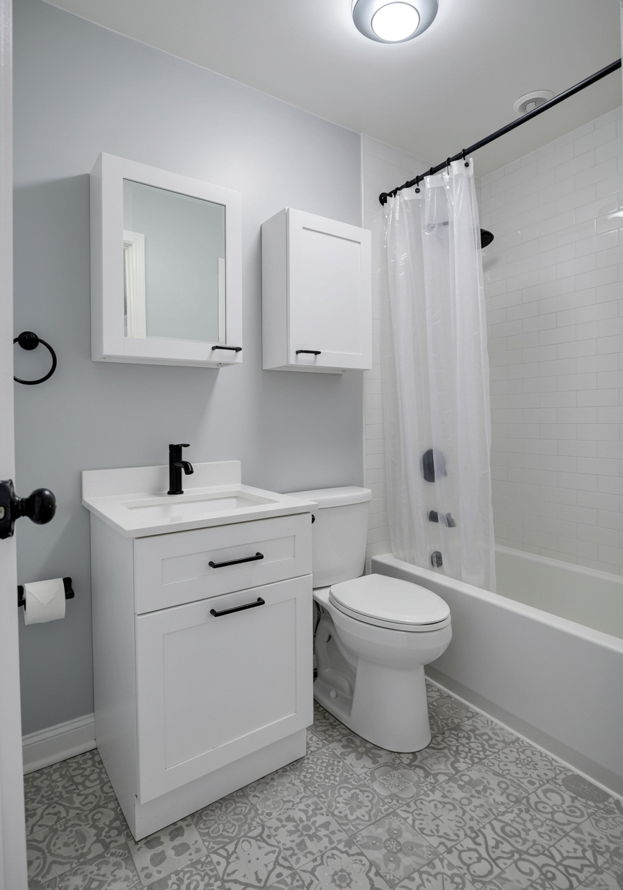 Consider adding tile flooring, as it can completely change the whole look of your bathrooms. Paired with fresh paint, a run down space can become fresh and new.